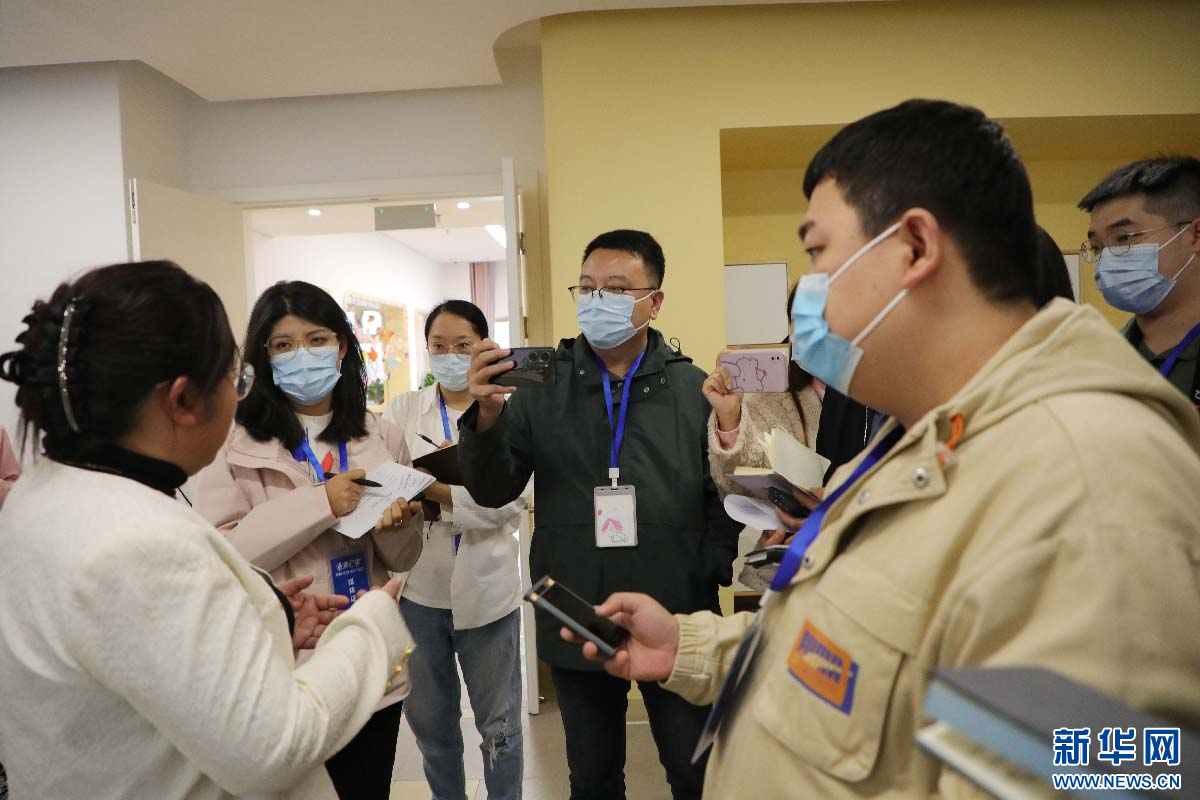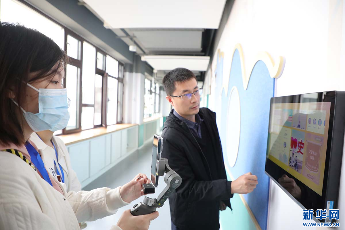“未来已来”网络主题采访团在雄安北海幼儿园采访。新华网 王立鹏摄