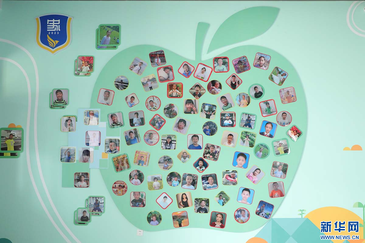雄安史家胡同小学的新生笑脸展示墙。新华网 王立鹏摄
