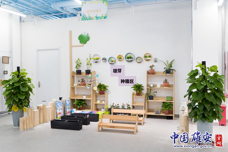 享趣智汇馆一楼划分“雄芽”种植区、白洋淀生态变迁区、儿童银行、宣传教育区、公共休息区5个功能分区。