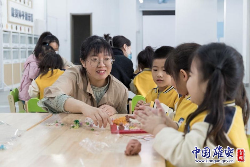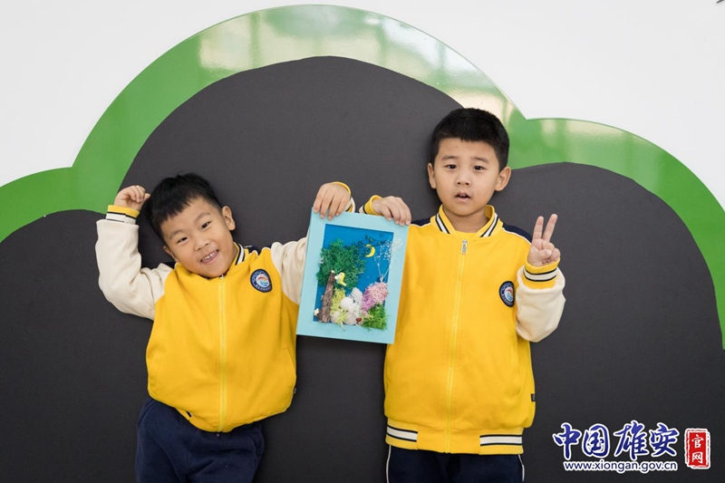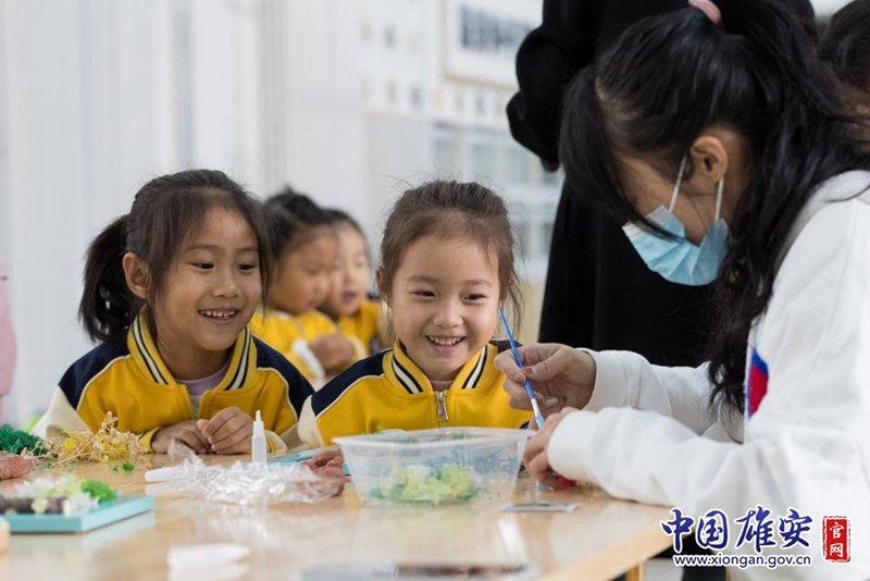 孩子们动手制作苔藓画、豆子画。中国雄安官网李鑫 摄