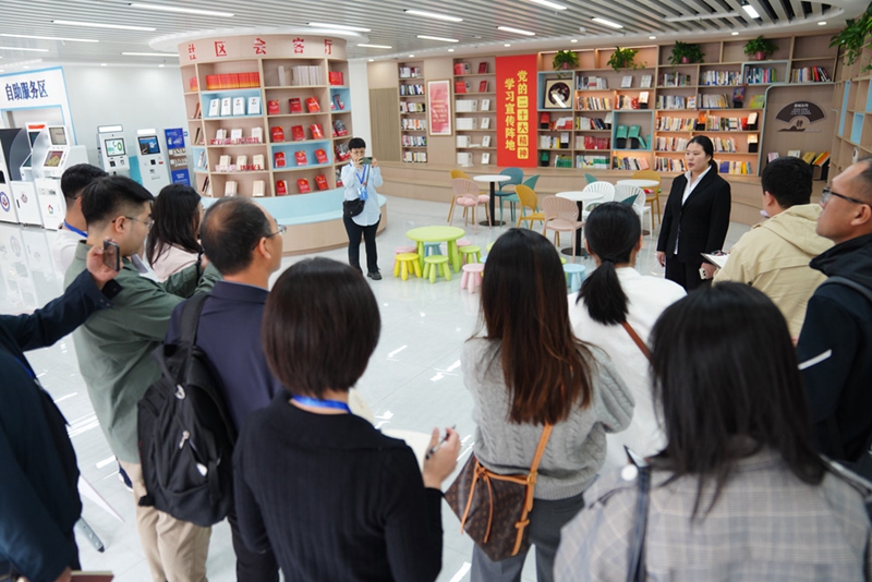 “未来已来”网络主题采访活动媒体团来到南文营社区党群服务中心参观走访。戎利彬 摄