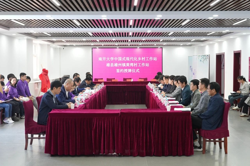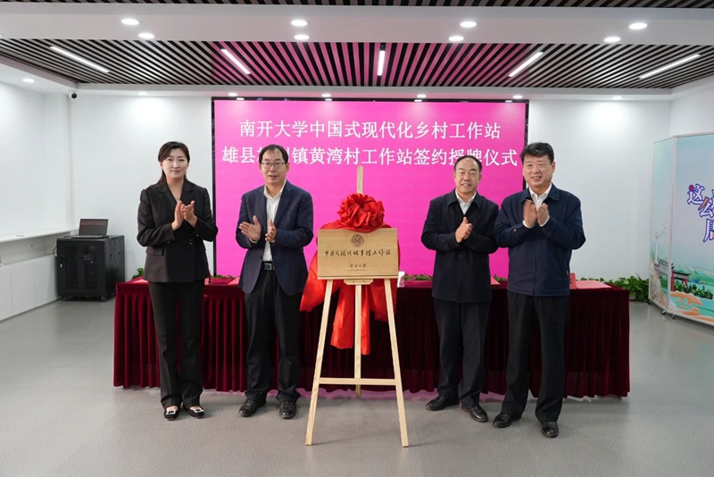 仪式上,南开大学旅游与服务学院党委书记王巍,现代旅游业发展省部共建协同创新中心主任石培华,商学院副院长李凯,历史学院副院长夏炎共同与雄县人民政府副县长张雷刚签订《南开大学中国式现代化乡村工作站共建协议》。