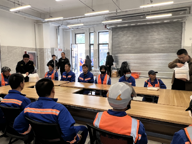 每天清晨,当我们还沉浸在梦乡中,默默无闻的他们早已穿梭在各条街道开始一天的工作,为片区提供干净、整洁的生活环境。城市管理与综合执法处为片区内60名“星辰守护者”送去爱心餐、热饮,提供临时休息场所。一份份爱心餐,让环卫工人们在秋寒中倍感亲切和温暖。