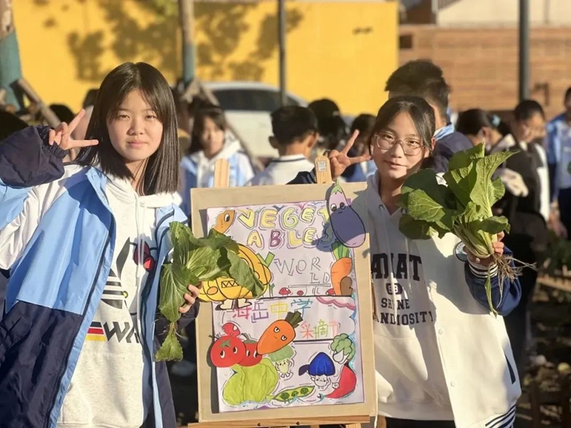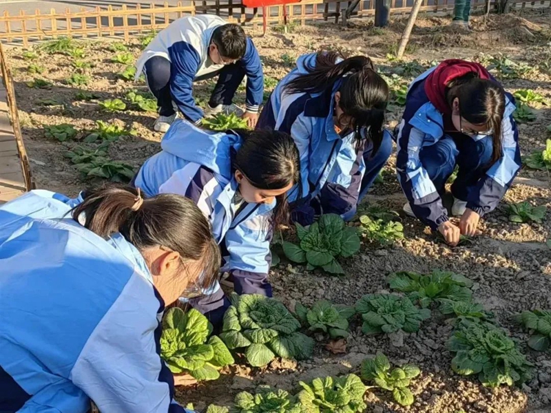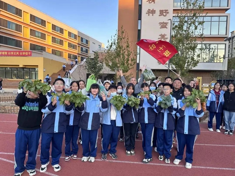 雄东海岳初级中学的孩子们的“百草园”,是每个班级都可以拥有一块属于自己的“一亩三分地”,孩子们在培土、浇水、施肥、除草中陪伴着种子生根发芽,体会到劳动实践带来的收获与快乐。活动当天,学生们采摘了自己种下的各种各样的已经成熟的蔬菜进行叫卖,所得资金由各班自行分配,全部用于学生活动。剩余的蔬菜,以社会捐助形式送给养老驿站的老人。学生们享受着自己的劳动成果,喜悦之情溢于言表。