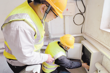 11月8日,在管道局第一生活区,身穿灰色工作服的供水公司工作人员手提工具箱穿梭在小区各单元之间。他们仔细检查每个单元低楼层供水管道和水表箱保温防护情况。