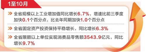 全省规模以上工业增加值同比增长6.7%,固定资产投资同比增长6.3%,限额以上单位实现消费品零售额同比增长9.7%……
