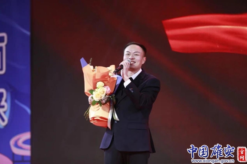 雄安雄东海岳初级中学校长陈长保献唱歌曲《精忠报国》。中国雄安官网发