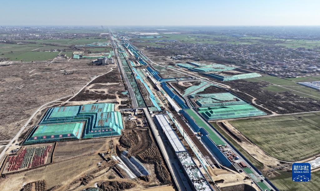 雄忻高铁雄安新区地下段项目建设现场(11月24日摄,无人机照片)。