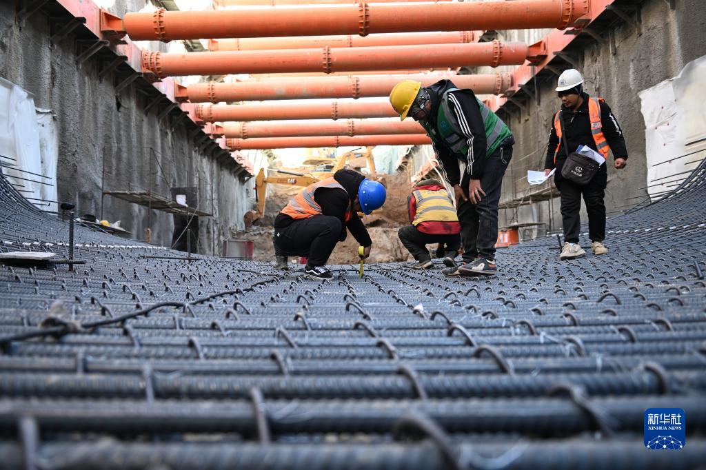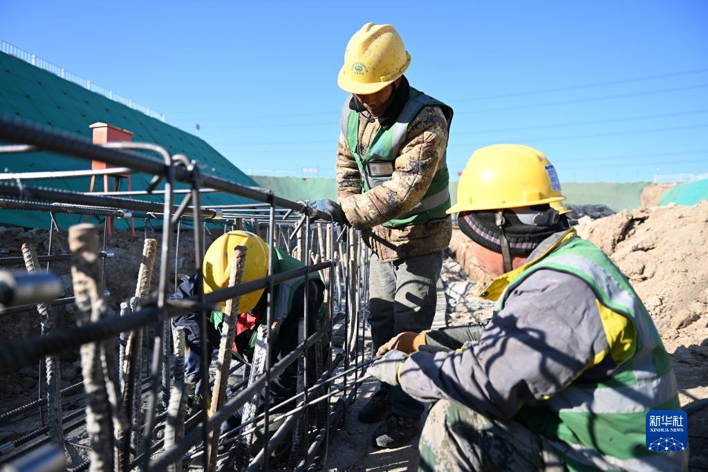 11月24日,中铁四局工人在雄忻高铁雄安新区地下段项目建设现场施工。