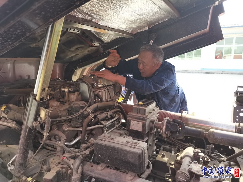 专业维修人员对消防车发动机仓开展检查保养。中国雄安官网发