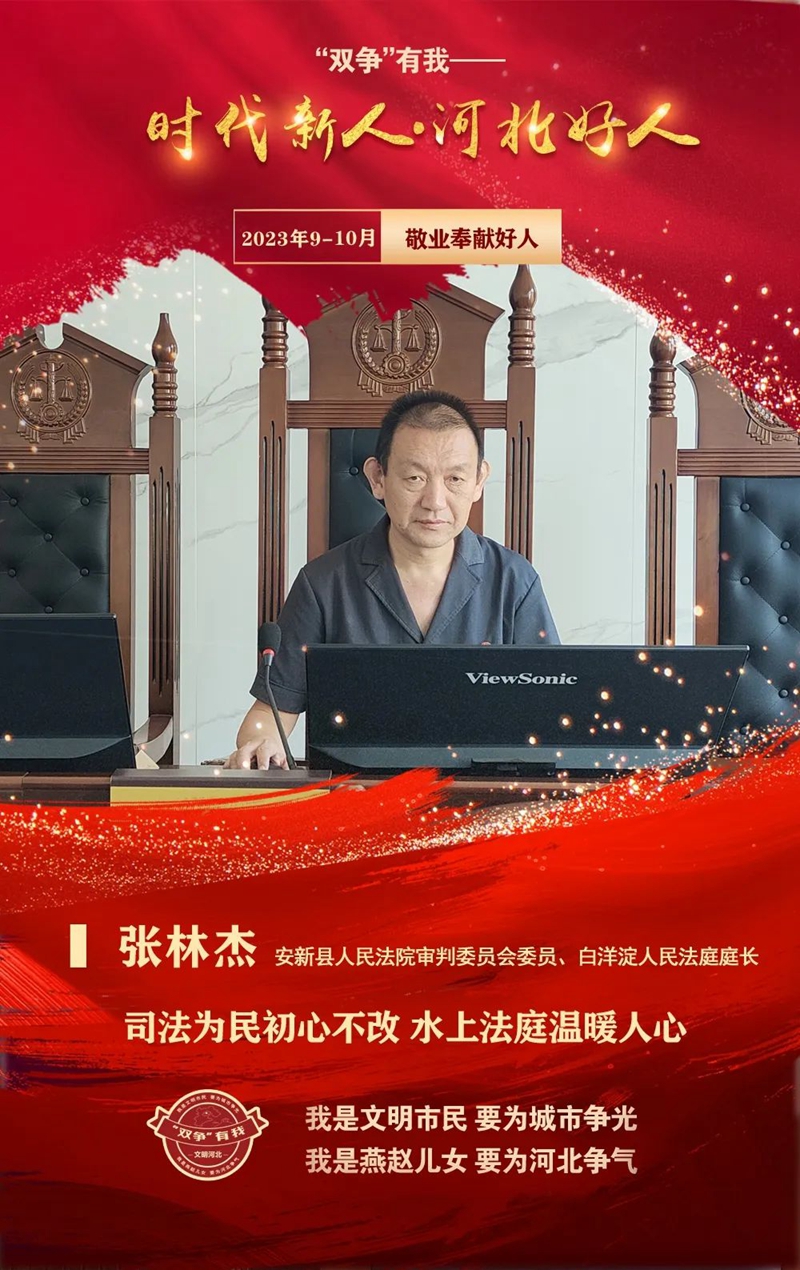 张林杰,男,1971年1月出生,中共党员,安新县人民法院审判委员会委员、白洋淀人民法庭庭长。他在白洋淀首创“巡回审判、便民利民、多元化解、定分止争”多元解纷机制,使辖区矛盾纠纷化解在当地,化解在诉前和萌芽状态,维护了辖区的社会稳定,被最高人民法院评为新时代枫桥式人民法庭典型案例予以发布和推广。