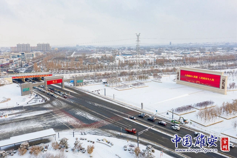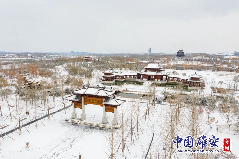 航拍雄安门雪景。中国雄安官网高盟 摄