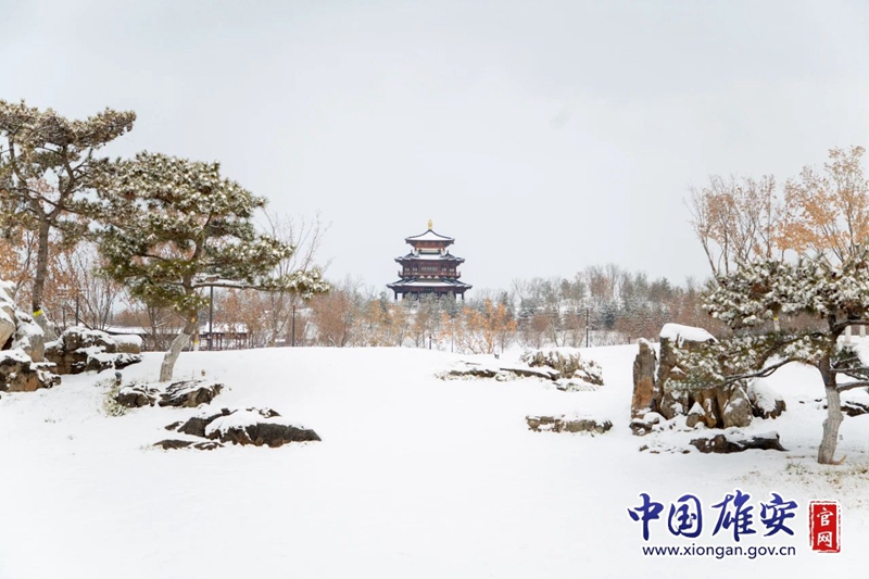 雄安新区悦容公园雪景。中国雄安官网高盟 摄