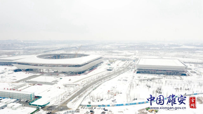 航拍雄安体育中心项目雪景。中国雄安官网赵伟彤 摄