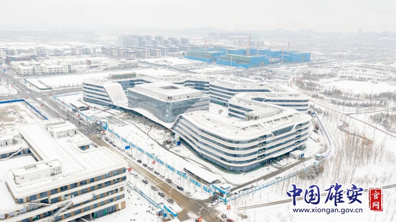 航拍中国星网总部项目雪景。中国雄安官网李鑫 摄