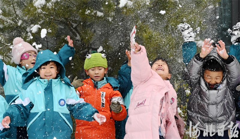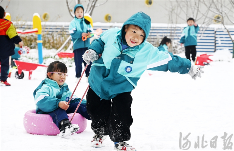 12月11日,雄安容东容和悦泽幼儿园,孩子们尽情地感受冬日雪后之趣。河北日报见习记者刘光昱 摄