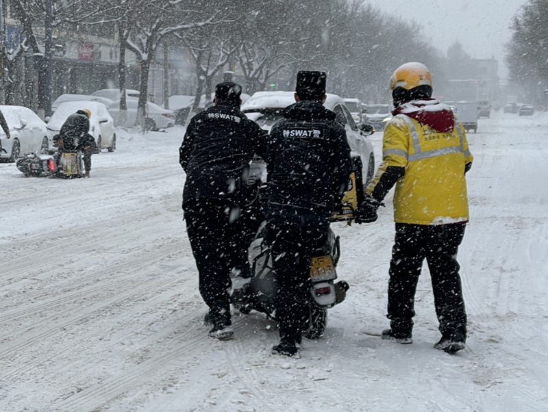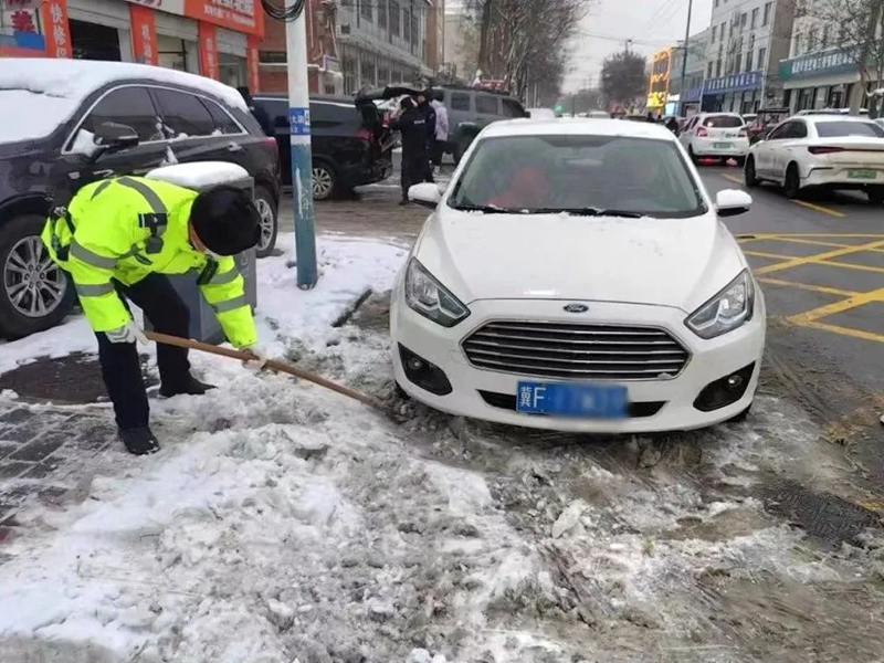 恰在护学岗执勤的民警秒变“铲雪官”