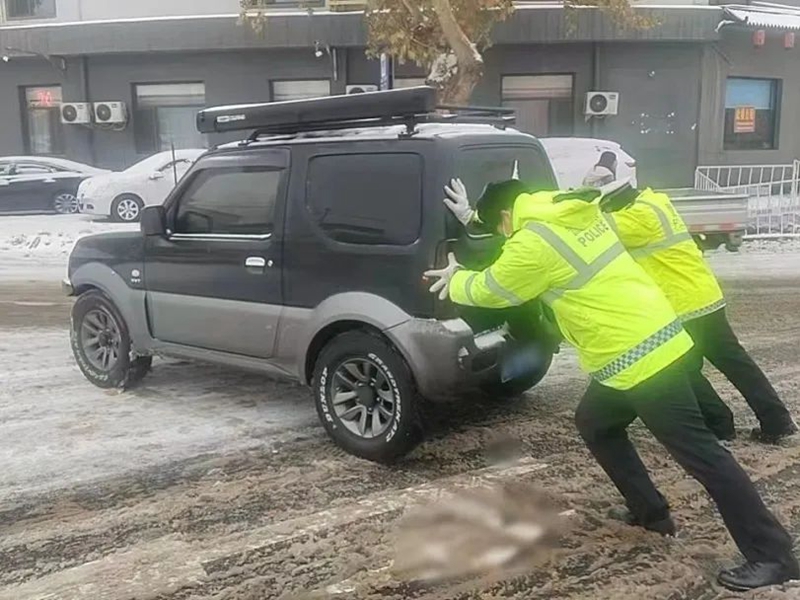 立即上前合力将车推到安全路段