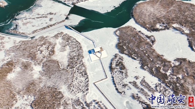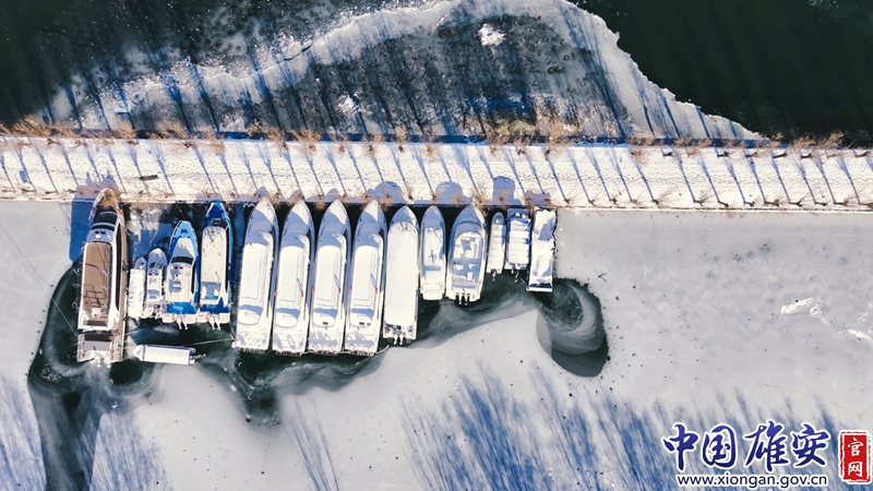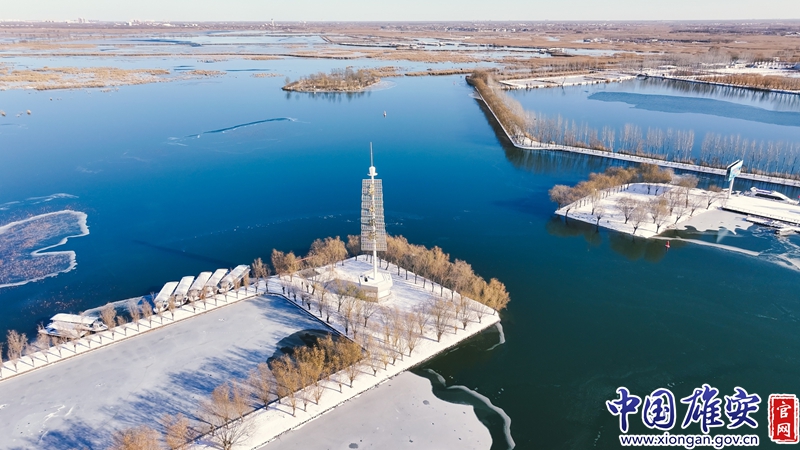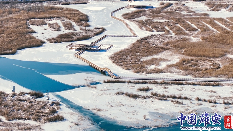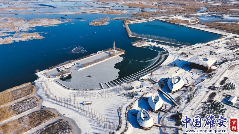 中国雄安官网12月18日电 近日,雄安新区迎来强降雪天气,白洋淀上,片片芦苇亭亭玉立,蓝色深邃的水面仿若一颗璀璨的明珠镶嵌在华北平原上,与这洁白的雪交相辉映,呈现出一片壮丽的北国风光。