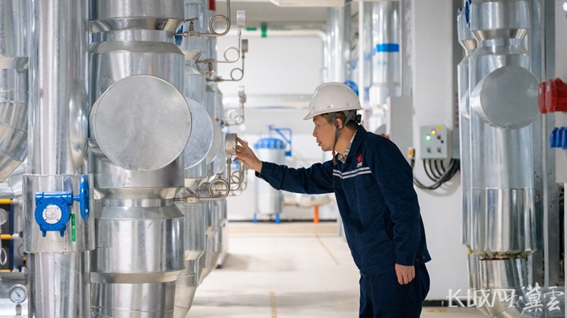 工作人员检查供热设备。长城网·冀云客户端记者李泽凯 摄