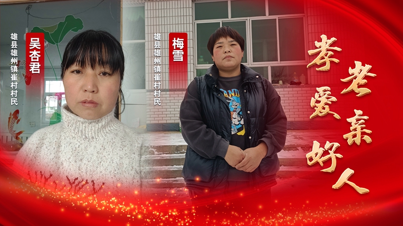 孝老爱亲好人。吴杏君,女,45岁;梅雪,女,37岁,妯娌俩是雄县雄州镇崔村村民。