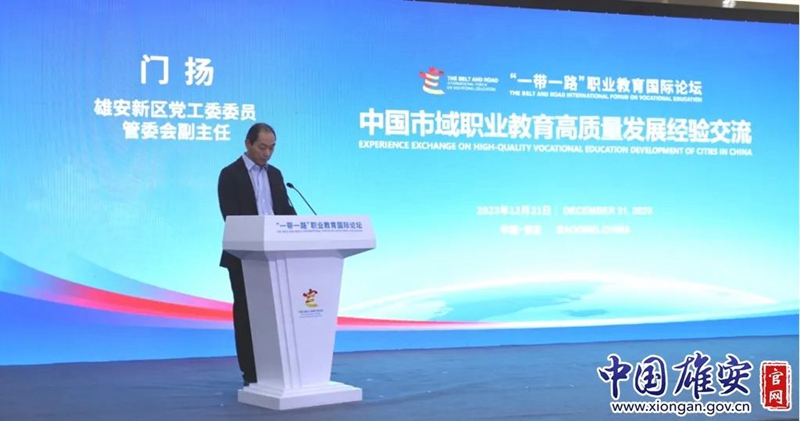 21日上午,“中国市域职业教育高质量发展经验交流平行论坛”在保定市举行,雄安新区党工委委员、管委会副主任门扬出席开幕式并致辞。他表示,雄安新区正在努力打造新时代中国高质量发展的全国样板,这离不开高质量的职业教育和高水平的产教融合。诚邀国内外职业教育学校及专家学者为雄安新区高标准高质量发展出谋划策,赋能新区职业教育发展。雄安新区将以本次论坛为契机,深入服务“一带一路”倡议实施,积极打造雄安职教国际品牌。加强与国际著名职教机构、职教发达国家政府、著名院校等合作交流,吸引国际组织和机构落驻,促进职教产教融合国际化发展。雄安新区将始终坚持“世界眼光、国际标准、中国特色、高点定位”,以开放包容的心态同大家携手并进、共谋发展,在国内外交流互鉴中迎来新发展、焕发新生机。随后,围绕职业教育服务雄安新区高质量建设,来自京津冀地区的高等职业院校负责人进行了对话交流。