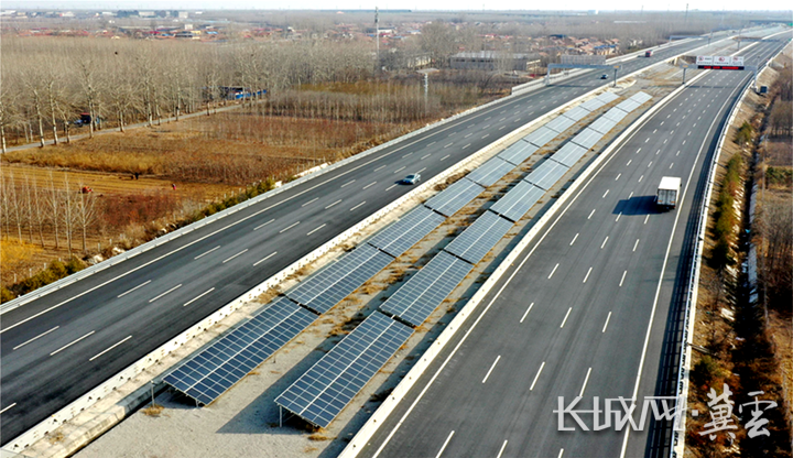 荣乌高速新线利用分离式路基的中间分隔带布设光伏组件。河北交投集团供图