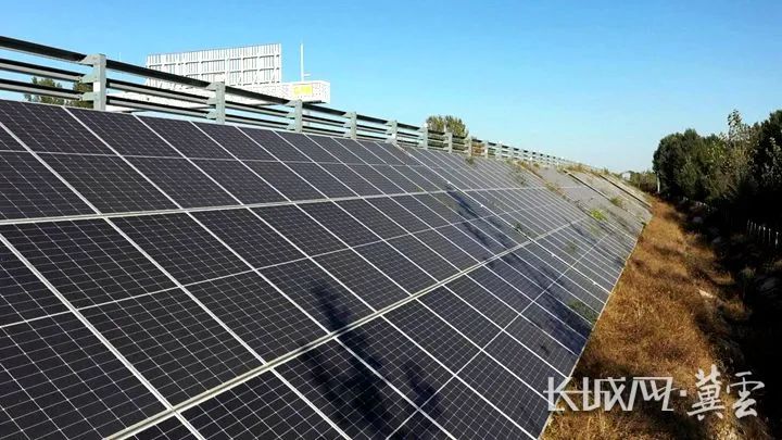 对高速边坡赋能开发,利用高速南侧边坡布设光伏组件。河北交投集团供图
