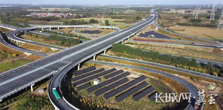 行驶在荣乌高速新线上大家可以看到,在高速中间分隔带、收费站周边的空地以及回转车道等空闲地方,都装满了光伏组件,不仅大幅提高了高速原有占地的利用率,也避免了项目建设新增占地。