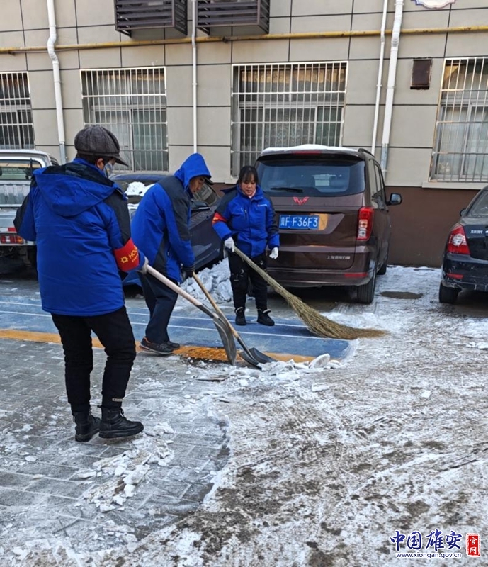 图为物业公司工作人员在除雪铲冰。雄县愿景和家物业管理有限公司供图
