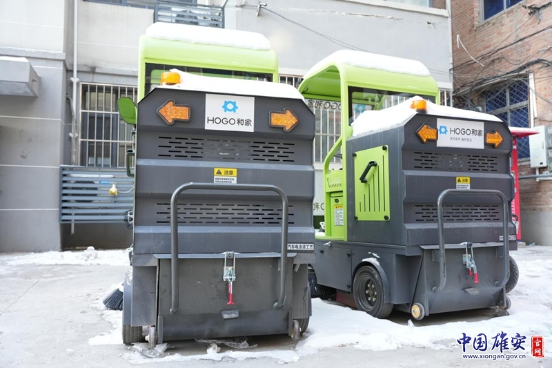 图为物业公司购置的清扫车辆投入到小区卫生环境治理中。中国雄安官网赵伟彤 摄