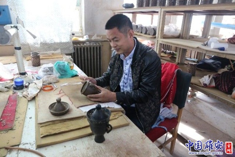 刘小伟在进行雄州黑陶制作。中国雄安官网发