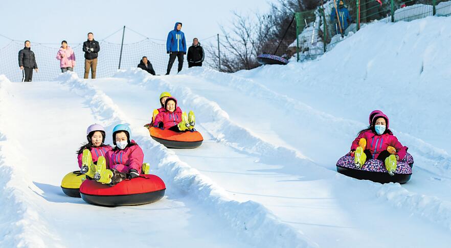 12月28日,游客在承德市兴隆县一处滑雪场游玩。新华社发(刘满仓摄)