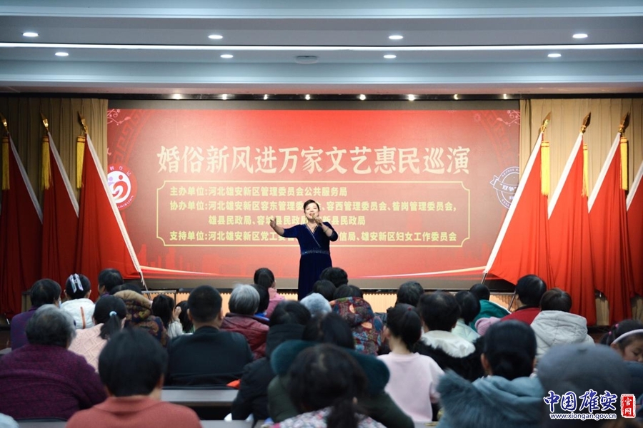 元旦期间,“婚俗新风进万家文艺惠民巡演”下社区、走村镇,在安新县安新镇王家寨村、容城县贾光乡王家庄村、雄县张岗乡张庄村婚俗改革特色试点连续举办演出,用群众喜闻乐见的方式倡导文明健康节俭的婚俗新风,推动和谐婚姻家庭建设,受到了现场观众的热烈欢迎。