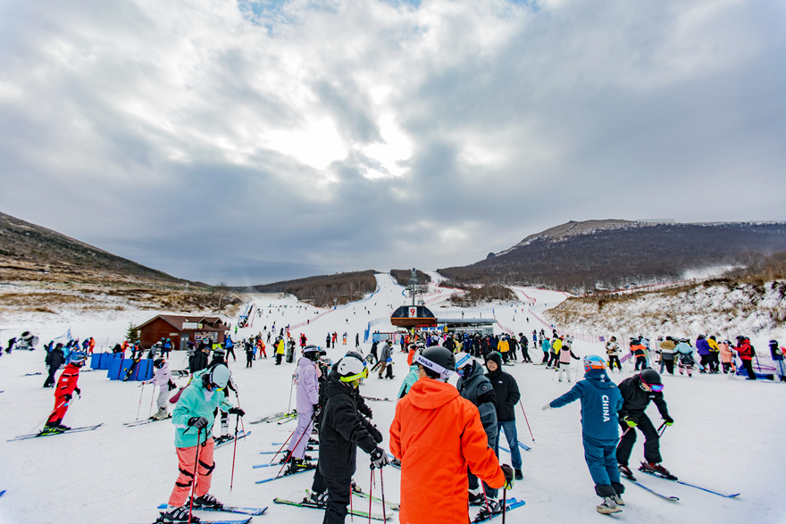 河北省张家口市崇礼滑雪场内人头攒动。 受访者供图