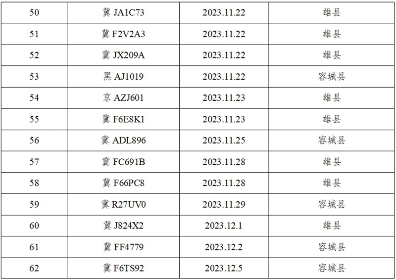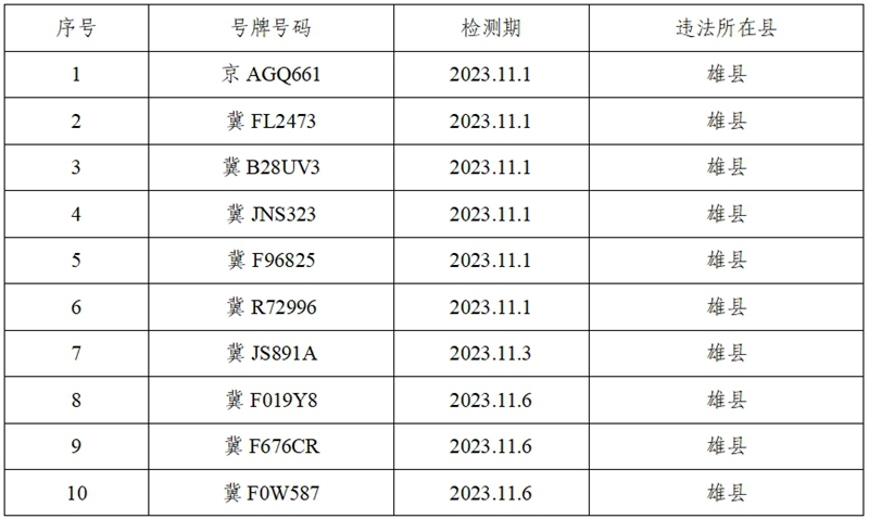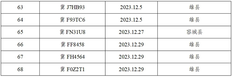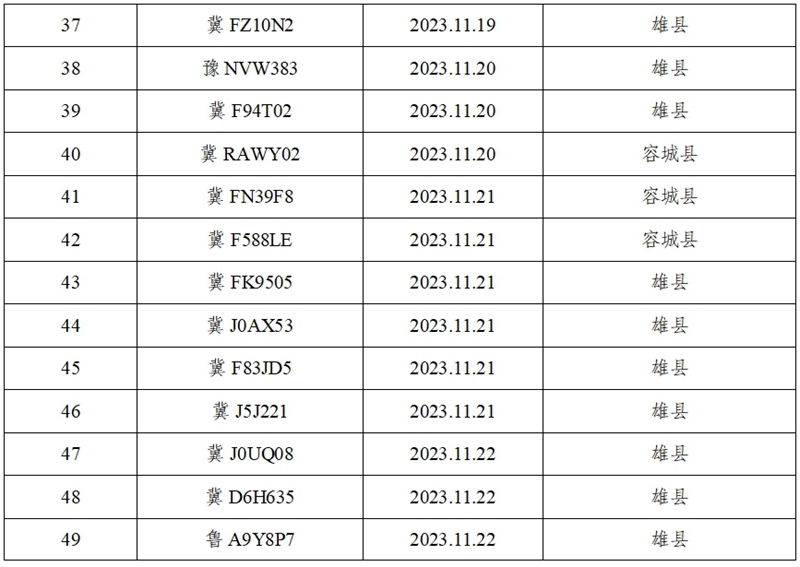 2023年11月、12月雄安新区三县路检路查超标车辆信息清单