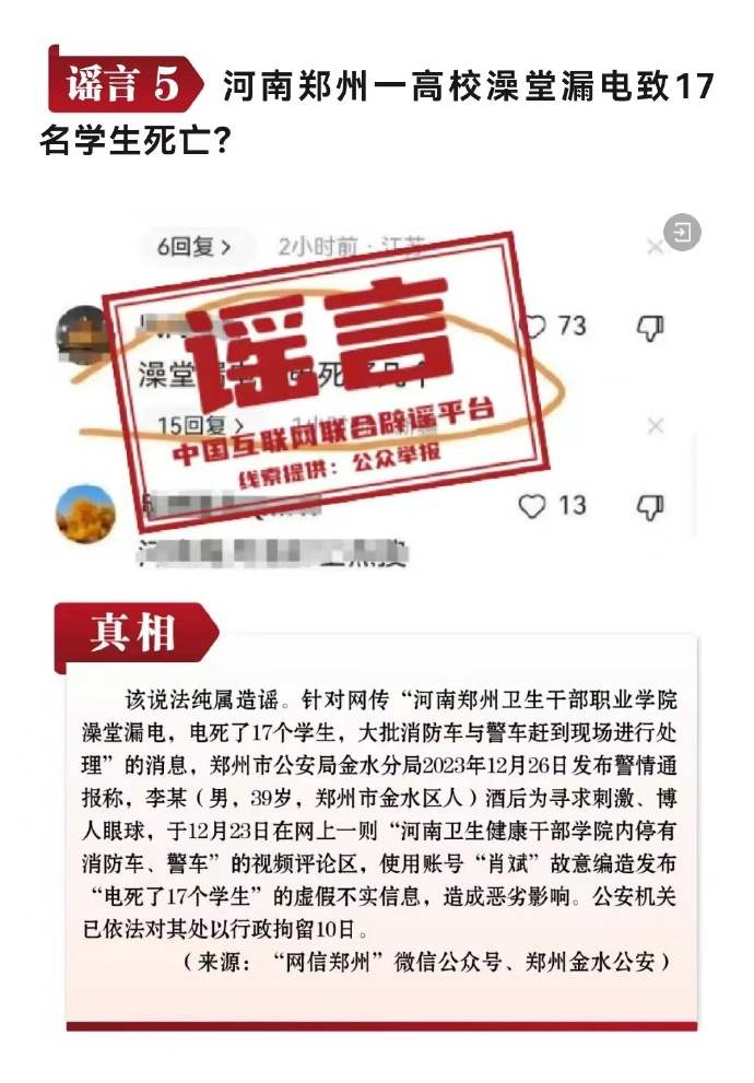 打击网络谣言 共建清朗家园 中国互联网联合辟谣平台2023年12月辟谣榜