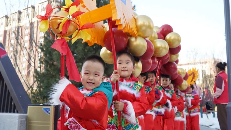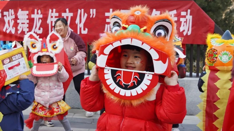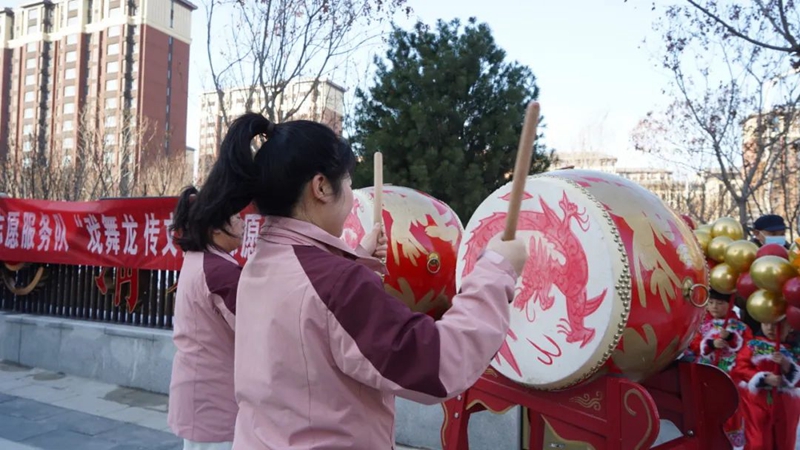 1月5日,青禾幼儿园开展了“戏舞龙 传文化”志愿服务活动,幼儿园小朋友们在老师的带领下走进社区、公园,为居民带来舞龙表演。