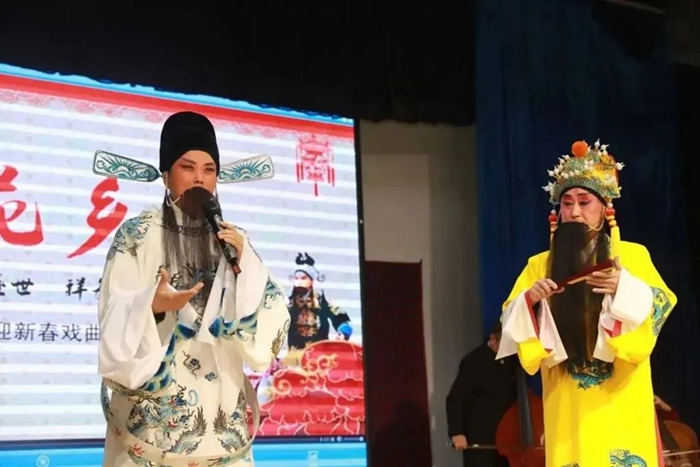 下午,伴随着铿锵的锣鼓声,盛世腾龙迎新春——戏曲联欢会在容城县老礼堂上演,礼堂内高朋满座、喜气洋洋。河北梆子《大登殿》《辕门斩子》《穆桂英挂帅》、评剧《三看御妹》《江姐》、京剧《红色娘子军》、折子戏《辕门斩子》等人们耳熟能详的精彩唱腔、惟妙惟肖的表演为观众带来一场丰富的视听盛宴。刚刚获得“河北省优秀剧目奖”的河北梆子《乔迁之喜》成为演出最大亮点,该剧通过戏剧表演形式,诠释了设立雄安新区给当地居民生产生活以及精神面貌带来的变化!