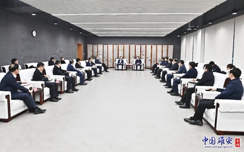 张国华首先代表雄安新区党工委、管委会对丁焰章、王斌一行的到来表示热烈欢迎,对中国电建长期支持新区建设发展表示衷心感谢。他表示,雄安新区深入学习贯彻习近平总书记视察河北及雄安新区重要讲话精神,完整、准确、全面贯彻落实党中央关于建设雄安新区的战略部署,统筹推进高质量建设、高水平管理、高质量疏解发展并举各项工作,三个层面片区建设同步推进、融合发展,城市综合功能、商业服务功能、公共服务功能不断提升,一幅新时代宜业宜居的“人民之城”拔节生长。希望中国电建一如既往关注、支持新区建设发展,充分发挥央企建设主力军作用,聚焦重大项目建设、片区开发、城市运营等领域持续深化拓展合作,进一步加大市场服务对接力度,汇聚更多资源要素,在新区落地更多优质项目和创新业务板块,共同推动新区高标准高质量建设发展。新区将积极做好要素保障和政策支持,持续优化营商环境,推动双方务实合作,实现互利共赢。