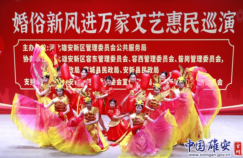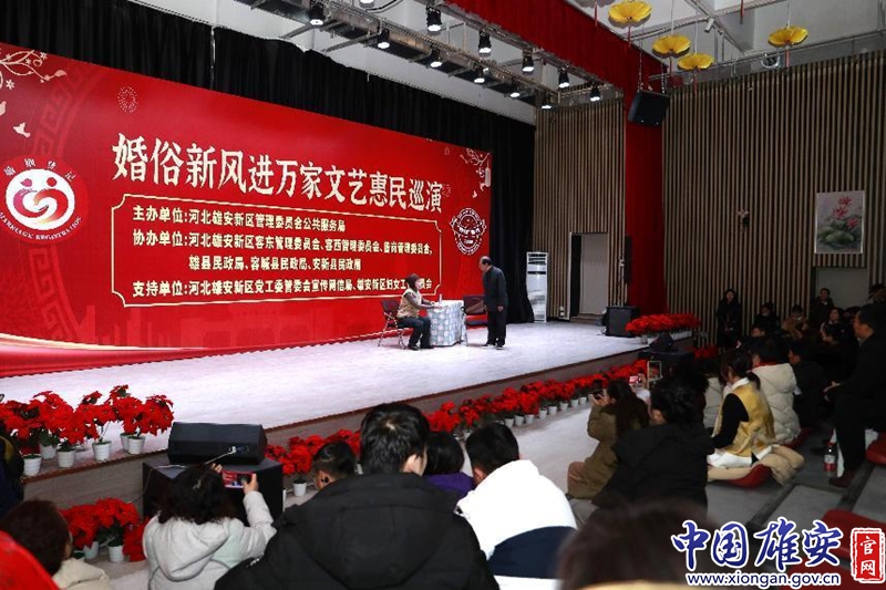 中国雄安官网1月20日电(李元闯)“婚俗新风进万家,文明幸福你我他”。在观众齐声一致的叫好声中,1月18日,雄安新区婚俗新风进万家文艺惠民巡演活动走进容东片区,为新区群众带来了一场特色的演出。