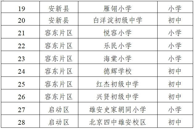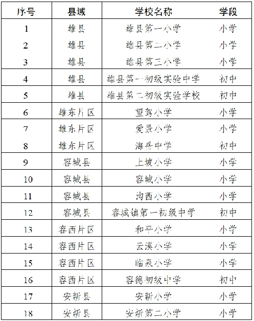 雄安新区2024年中小学生寒暑假免费托管服务试点学校名单