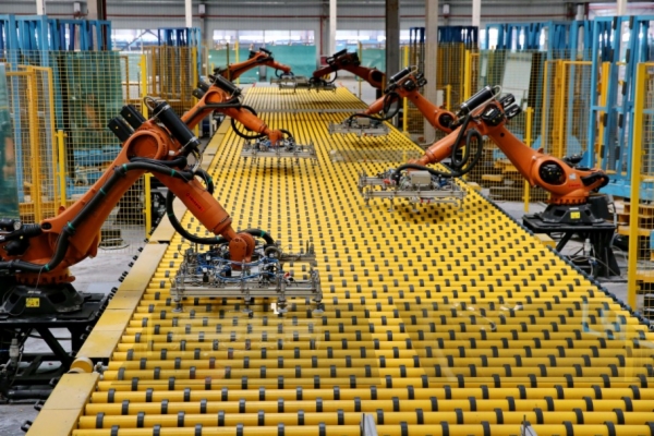 耀华玻璃的自动化流水生产线。记者李铎 摄