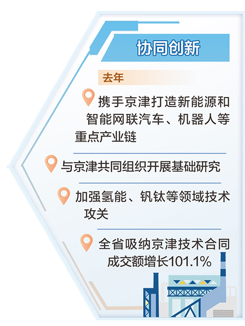 锚定目标,主动作为。出席省两会的代表、委员纷纷表示,要切实强化协同创新和产业协作,着力提升科技创新能力和水平,在对接京津、服务京津中加快发展自己。