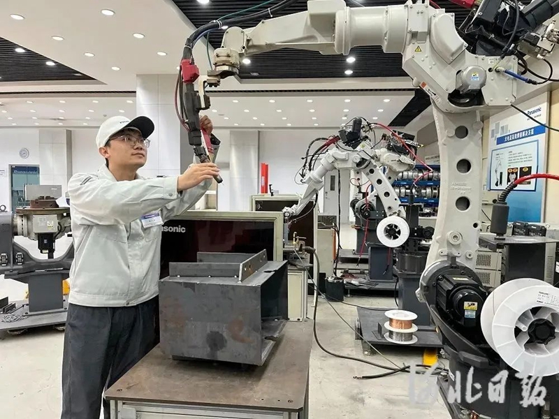 2023年12月13日,在唐山松下产业机器有限公司,工作人员正在对机器人识别系统进行检测。河北日报记者师源 摄