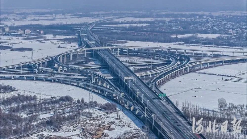 2023年12月28日拍摄的京雄高速雄安段(无人机照片)。当日,京雄高速公路北京五环至六环段顺利贯通。至此,京雄高速全线通车运营。(资料片)新华社发(刘潇 摄)