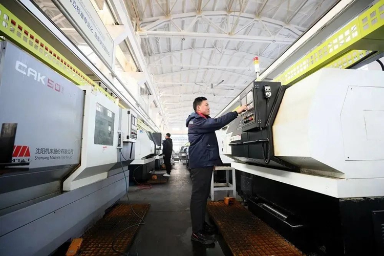 2023年12月21日,在位于隆尧县的河北远大阀门集团有限公司锻钢高端定制车间,工人操控智能设备加工阀门产品。新华社记者牟宇 摄