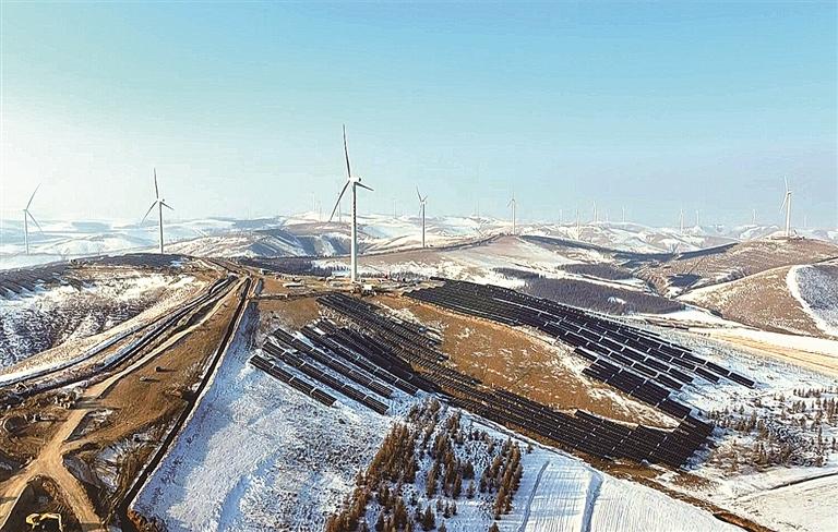 日前,丰宁风光氢储100万千瓦风光项目现场最后一组刀闸合拢,标志着丰宁风光氢储100万千瓦风光项目成功带电并网,也标志着全国规模最大的风、光、氢、储、产一体化基地项目取得重大进展。该项目是国家第一批以沙漠、戈壁、荒漠地区为重点的大型风电、光伏基地建设项目,也是目前全国规模最大的风、光、氢、储、产一体化基地项目。图为项目一角。