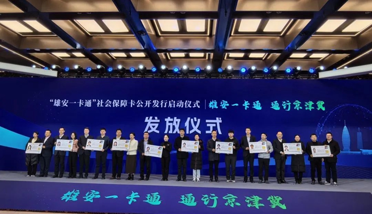 1月24日,“雄安一卡通”社会保障卡公开发行启动仪式在雄安新区举行。现场,雄安新区公共服务局、雄安集团数字城市公司以及8家合作金融机构为10名新区群众和北京疏解单位代表现场发放“雄安一卡通”社会保障卡。