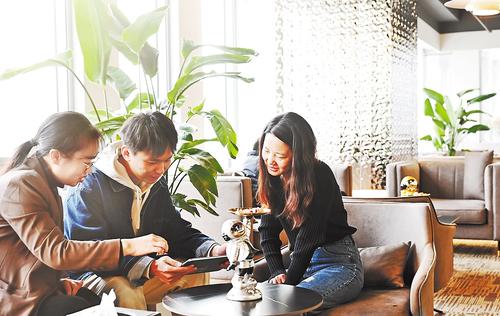 1月19日,企业代表在雄安新区中关村科技园洽谈业务。河北日报记者刘光昱 摄